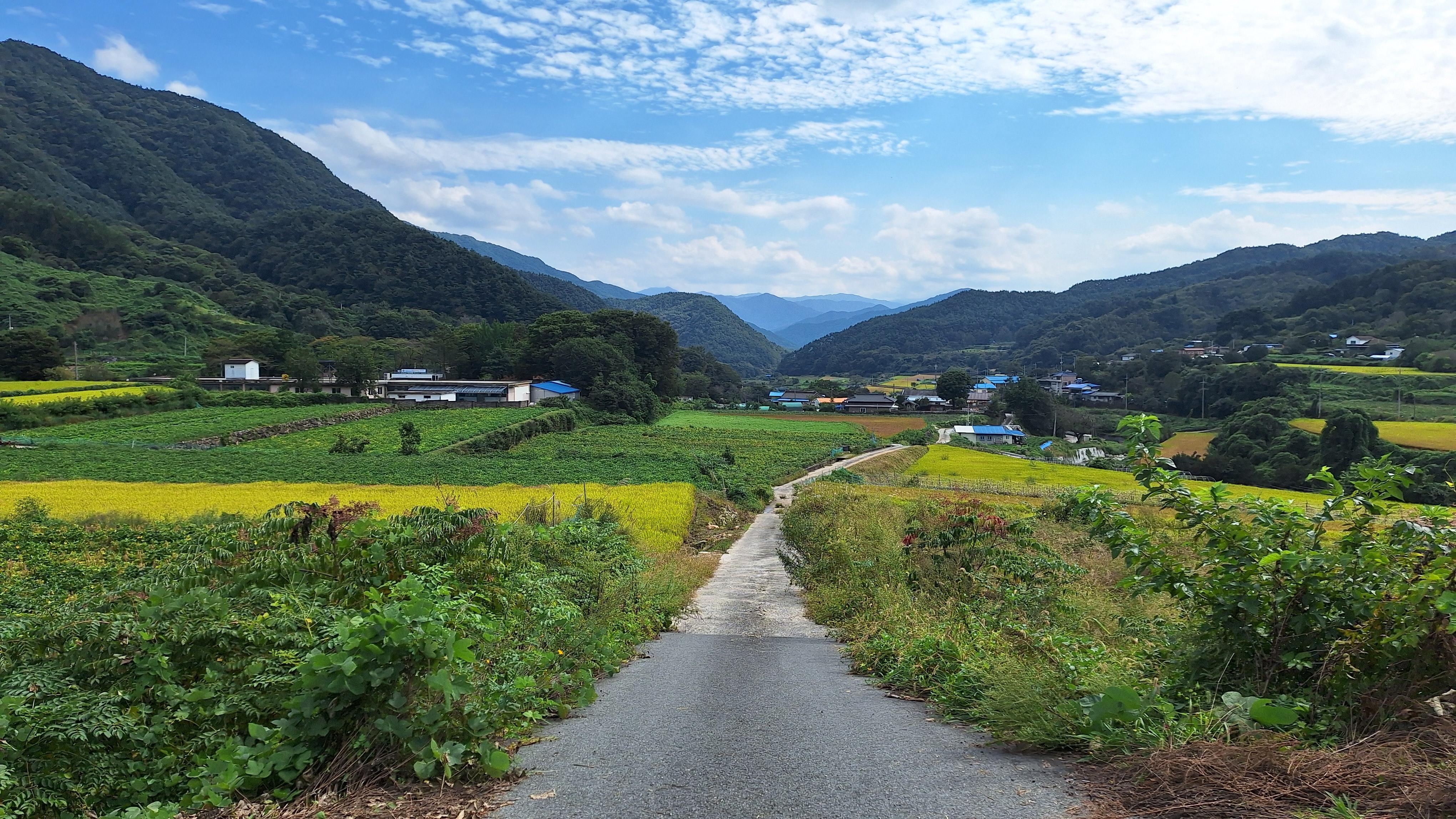 (중앙) 버섯지붕 친구 최봉규(문수) 형님 댁. 바로위 상신마을