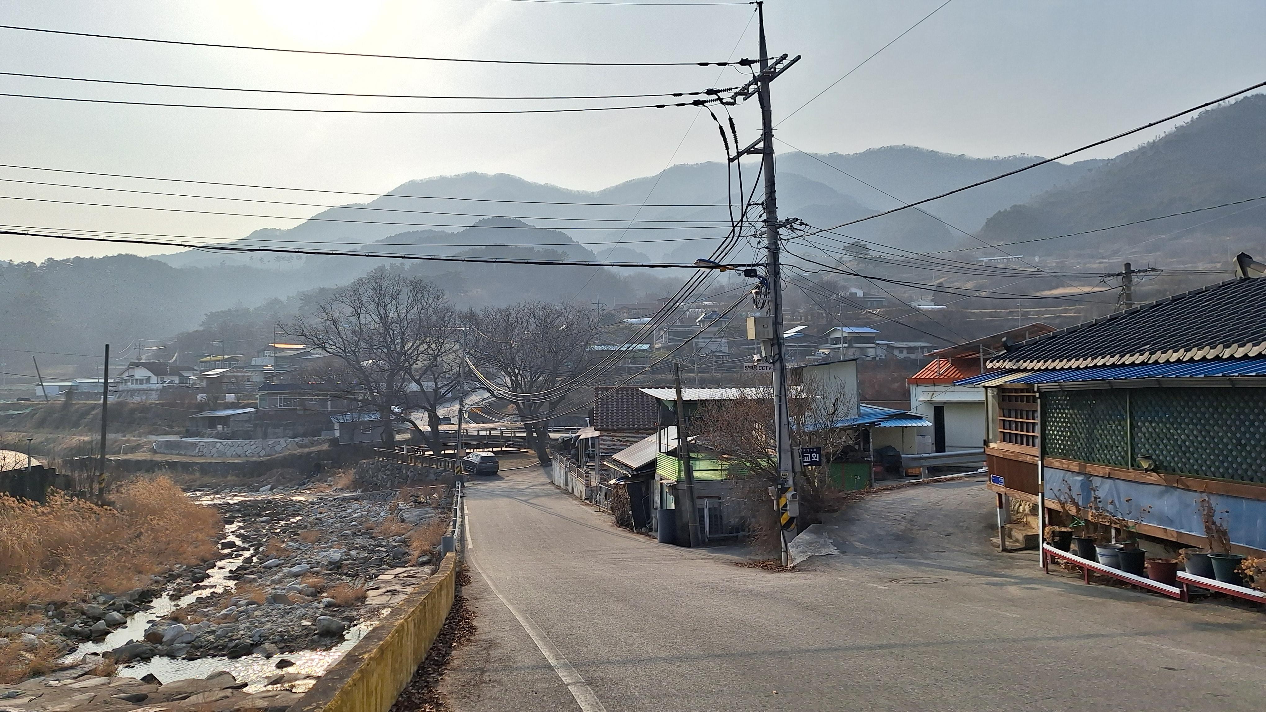 봄날처럼 날씨가화창하고 스쳐지나가는 마을 들이 평화롭다.